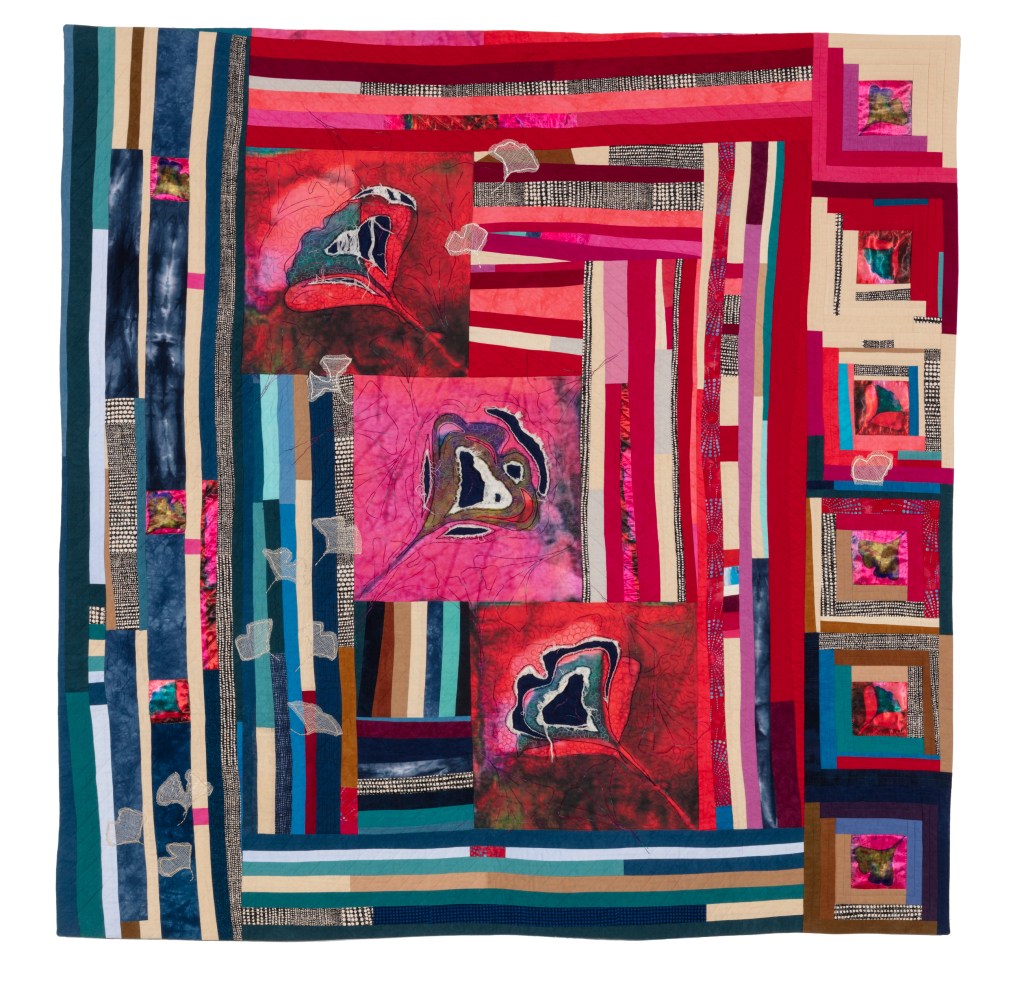 Science and art are intertwined in these textiles. I create my own fabric either by traditional relief printing or by digitally manipulating my original mono prints. All of the artwork is heavily hand stitched.