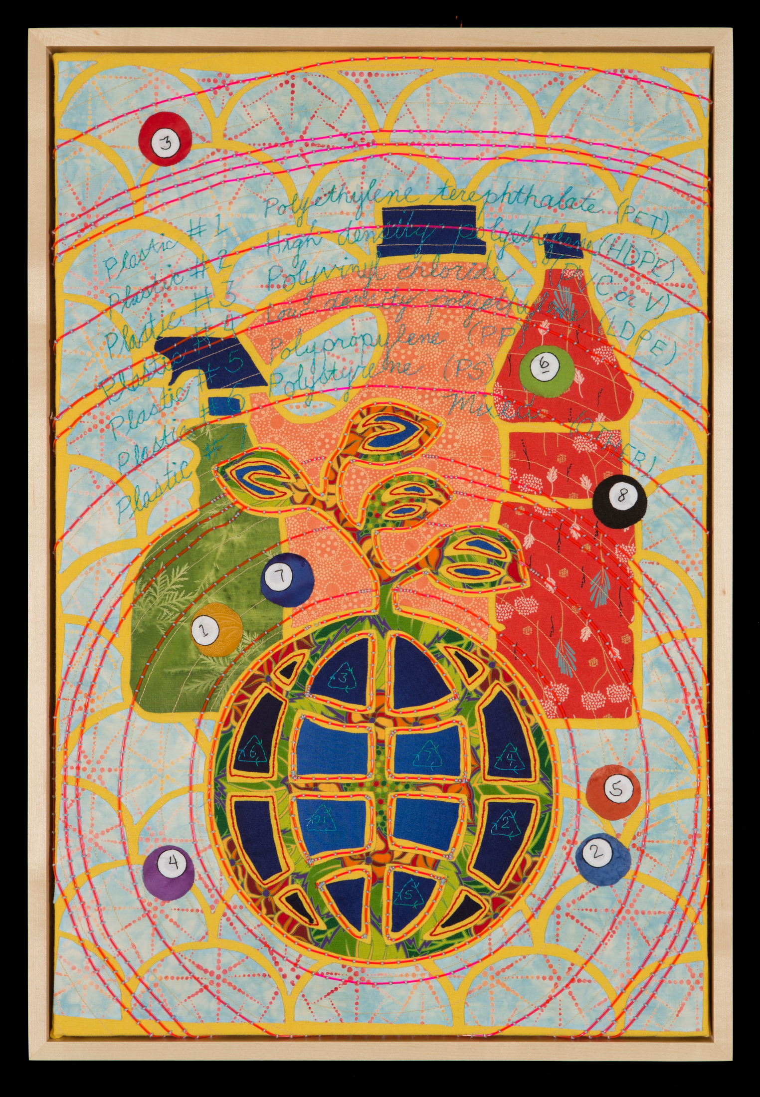 Previous Image Next Image KathySuprenant_001 JUST ONE WORD: PLASTICS /2018/27″X18″/hand-appliquéd, hand-embroidered, machine quilted/