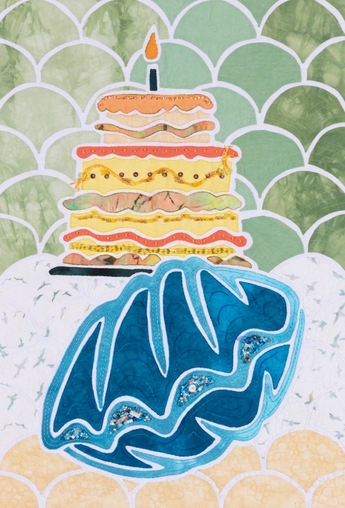 Once upon a time I studied how clam eggs divided and developed! This led to my love of clams and a series of quilts dedicated to a very old quahog, Ming. In 2006, scientists dredged up a live clam from the North sea. The London Sunday Times nicknamed the clam “Ming” because it was “born” in 1499, during the Chinese Ming dynasty and lived for over 500 years.